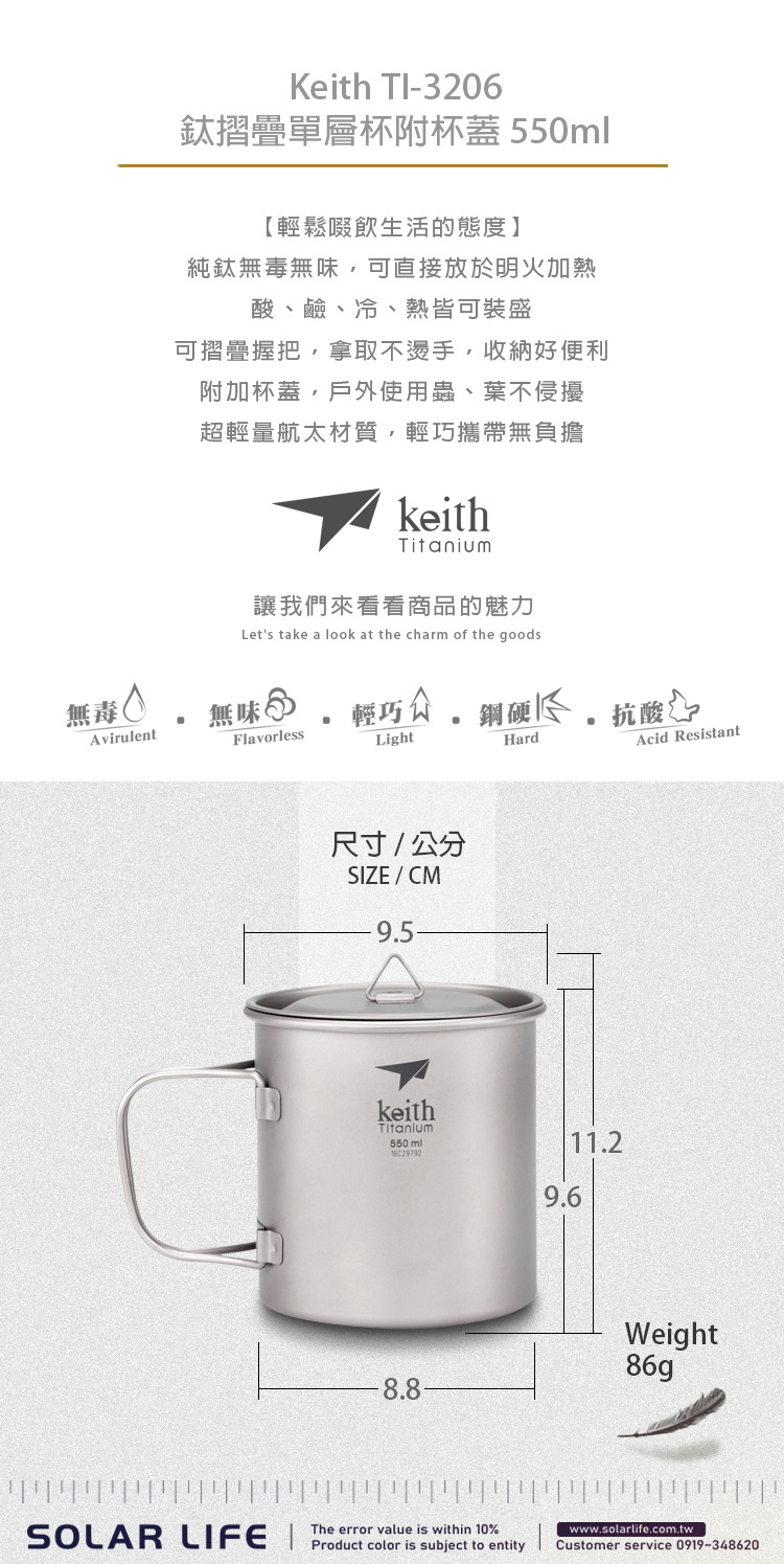 - 品名:鎧斯Keith Ti3206 鈦摺疊單層杯附杯蓋 550ml